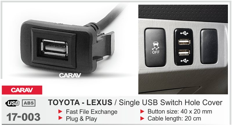 —CARAV 17-003 USB разъем в штатную заглушку / 1 порт TOYOTA-LEXUS new (некоторые модели)