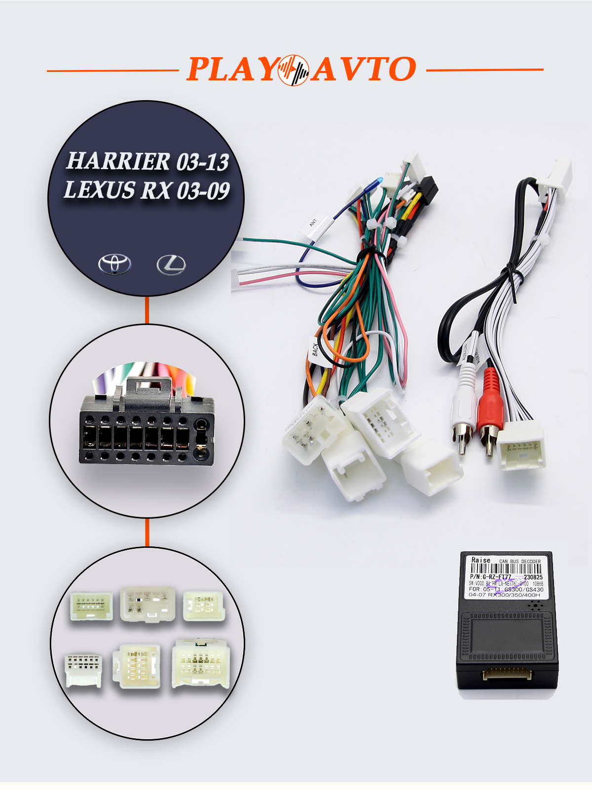—Комплект проводов для Toyota Harrier 03 - 13, Lexux RX 03 - 09 (для авто с нави) LeTrun 6108