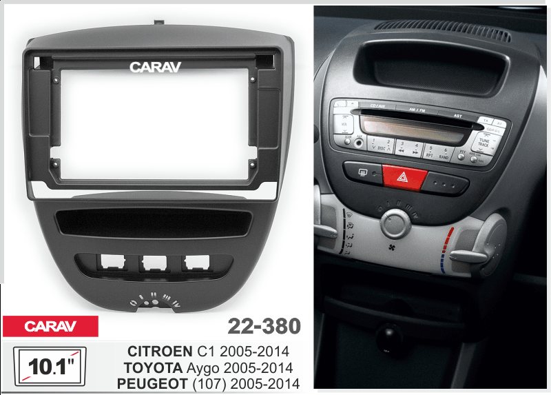 —CARAV 22-380 (9 дюйм. монтажная рамка для а/м CITROEN C1 2005-2014 / TOYOTA Aygo 2005-2014 / PEUGEOT (107) 2005-2014