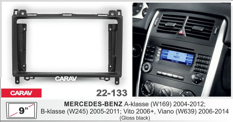 —CARAV 22-133 (9 дюйм. монтажная рамка для а/м MERCEDES-BENZ A-klasse (W169) 2004-12; В-klasse (W245) 2005-11; Vito, Viano 2006+