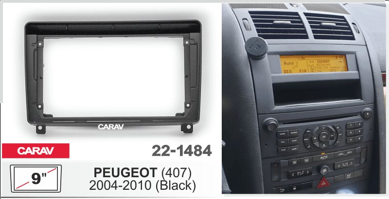 —CARAV 22-1484 (9 дюйм. монтажная рамка для а/м PEUGEOT (407) 2004-2010 (черная)