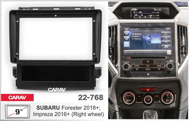 —CARAV 22-768 (9 дюйм. монтажная рамка для а/м SUBARU Forester 2018+; Impreza 2016+ (руль справа)