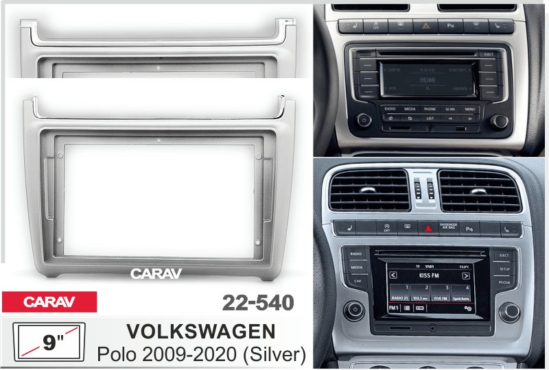 —CARAV 22-540 (9 дюйм. монтажная рамка для а/м VOLKSWAGEN Polo 2009+ (серебро)